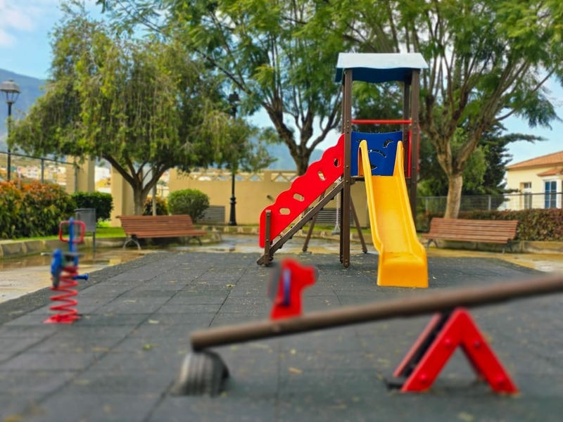 Cuenta con un módulo con tobogán-columpio, un balancín, y dos divertidos muelles: uno con forma de moto y otro con forma de perro. Un espacio ideal para jugar, divertirse y disfrutar al aire libre.